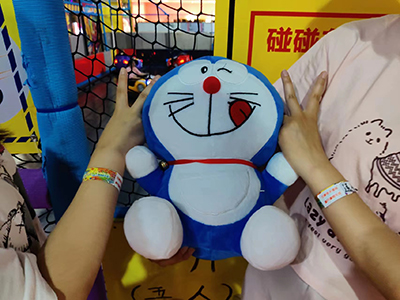 蹦沙卡拉卡,蹦沙卡拉卡,全場響起了音樂,原來是有獎競答活動,優(yōu)勝者可以選擇在全場甚至于整個倉庫選擇自己最喜愛的娃娃將心愛的它帶回家,一輪輪的比拼,我們的道婷小同志過五關(guān)斬六將,終于進(jìn)入了總決賽,最后激動人心的時刻到來了,冠軍爭奪大PK,咦一一,沒想到這么激烈的游戲最后以石頭剪刀布的方式落下帷幕,而冠軍當(dāng)然就是我們幸運(yùn)無比的道婷小同志,她選擇了最愛的哆啦A夢(晚上她一定能抱著她睡個好覺)哈哈哈哈